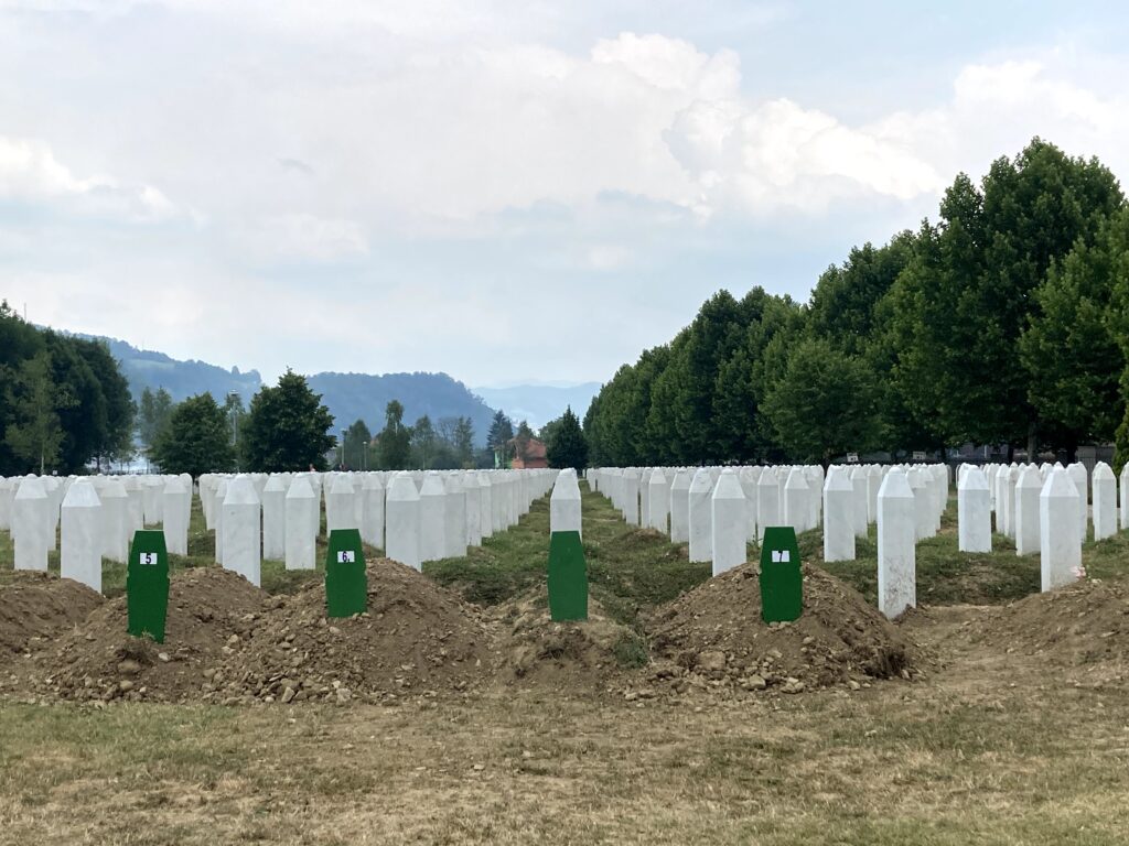 Gravpladsen i Potocari, Srebrenica, hvor ofre fra folkemordet i 1995 er begravet. De grønne gravpladser er de nyeste identificerede lig. Foto: Iman Hassani